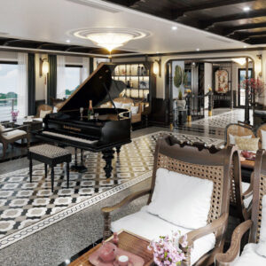 11h45: Quý khách tới nhà chờ riêng của du thuyền L’mour tại bến Tuần Châu, thưởng thức đồ uống chào mừng và làm thủ tục lên tàu.