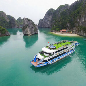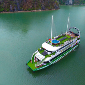 17h30 – 18h00: Tàu cập bến. Nhân viên chào tạm biệt Quý khách, kết thúc hải trình 7 tiếng tham quan trên vịnh.